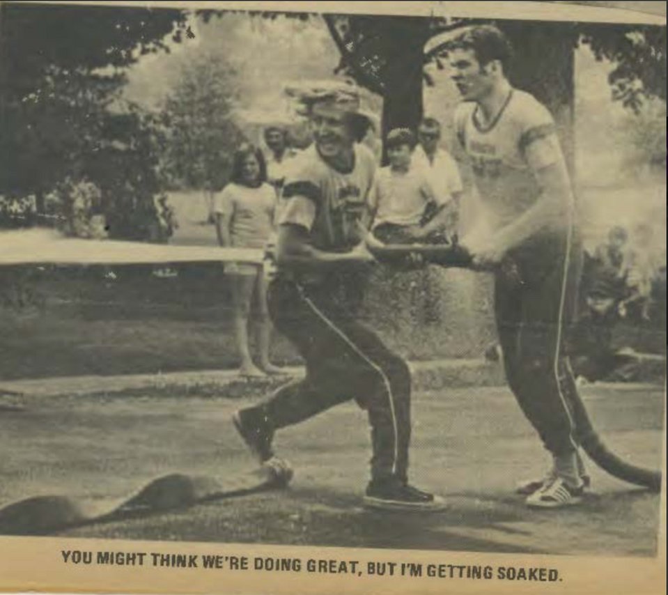 The Straight Lay consists of a five member team competing to hook up to a hydrant; connect three lengths of 2 ½ inch hose and nozzle; run the 150 foot course; and flow water through a nozzle knocking down the target in the quickest time.
